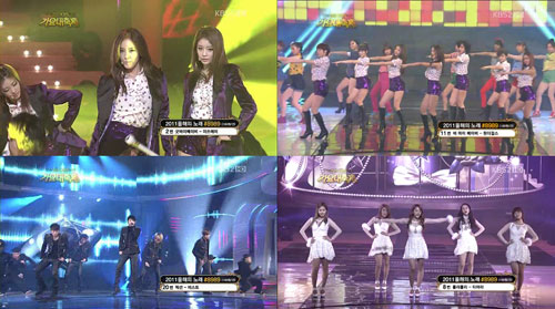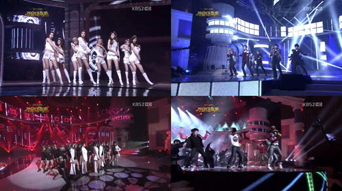 화려한 의상과 편곡 등으로 무대를 꾸민 걸그룹과 보이그룹. 먼저 소녀시대, 시크릿 등은 반전의상으로 눈길을 끌었다. 소녀시대는 웨딩드레스를 입고 등장했지만 이어 핫팬츠 하의패션으로 여전사 카리스마를 뽐냈다. 시크릿은 깜찍한 무대에서 섹시 무대로 반전 매력을 선사했다.