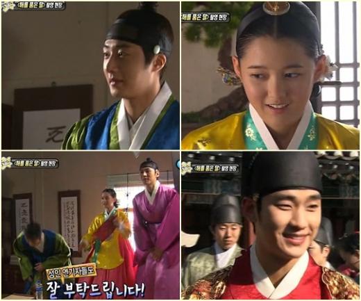 지난 15일 방송된 MBC 연예정보 프로그램 '섹션TV 연예통신'에서는 3회만에 20%를 돌파하며 화제를 모으고 있는 판타지 사극 '해를 품은 달'의 성인 연기자 첫 촬영현장을 찾았다.