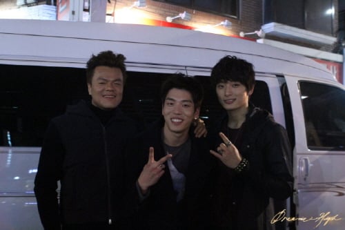 14일 제작사에 따르면 창민은 지난 12일 추운 날씨에도 연일 이어지는 촬영으로 고생 중인 멤버 정진운을 비롯한 JYP 수장 박진영을 응원하기 위해 촬영장을 기습 방문했다.