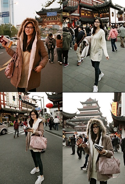 사진 속 공현주는 방송에서의 화려한 모습과는 달리 뿔테 안경에 편안한 운동화를 신은 평범한 '모범생 패션'으로 상하이 거리를 활보하고 있다.