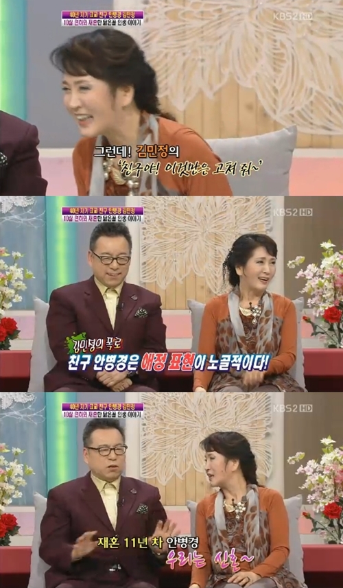 이에 안병경은 "재혼 10년 차와 20년 차는 다르다. 우린 아직도 신혼 같다"고 말해 닭살 부부의 면모를 드러냈다.
