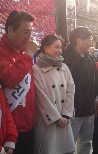 배우 이영애가 남편 정호영과 함께 선거 유세장에 모습을 드러냈다.