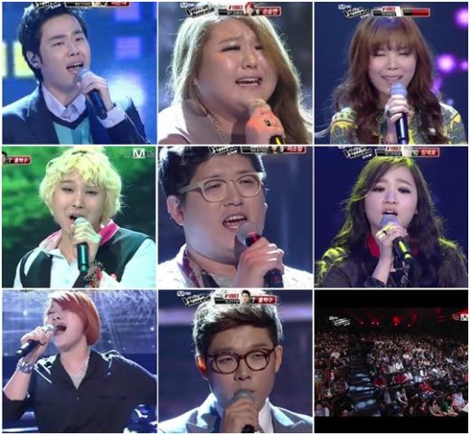 13일 오후 11시 방송된 케이블 음악채널 Mnet '엠넷 보이스 코리아'(이하 '엠보코')에서는 두번째 라이브쇼를 펼치는 가운데, 죽음의 조 신승훈 코치 팀과 독특한 개성으로 무장한 강타 코치 팀 12명이 다음 라이브쇼 진출을 위한 진검승부를 펼쳤다.