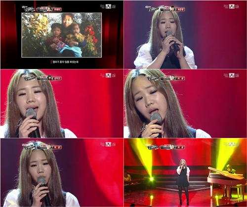 유성은은 20일 오후 서울 영등포 타임스퀘어 CGV 아트홀에서 생방송으로 진행된 케이블 채널 Mnet '엠넷 보이스 코리아'(이하 '엠보코')의 세 번째 라이브쇼에서 감동의 사부곡을 불렀다.