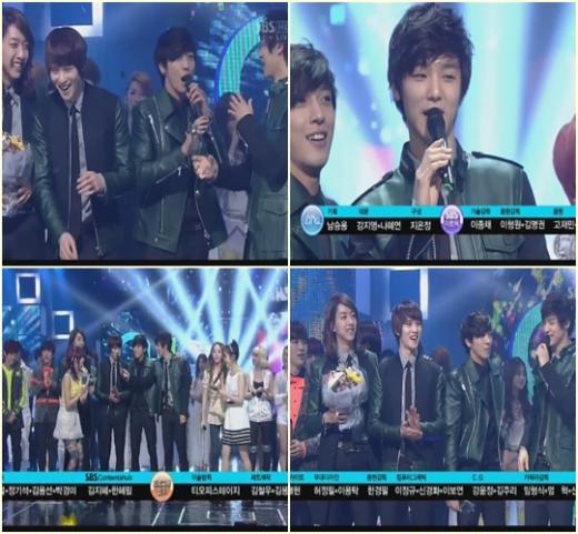 씨엔블루는 22일 오후 서울 등촌동 SBS 공개홀에서 생방송으로 진행된 SBS 가요 프로그램 '인기가요'에서 '헤이 유'로 1위에 해당하는 뮤티즌송을 차지했다.