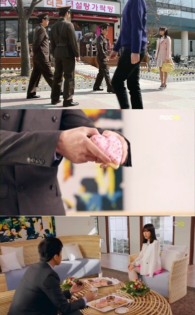 WOC 남북단일팀 군사훈련을 위해서 북한으로 갔을 때도 또 '도너츠 타령'을 했다. 입으로 도너츠를 넣지 않을 때도 입에 '도너츠'라는 말을 달고 살았고 상견례 자리에도 도너츠를 대접했다. 이쯤 되면 심하다. 이승기는 하지원을 향해 "도너츠는 따뜻한 커피와 먹어야지"라는 뻔한 대사, 아니 광고 카피를 내뱉는다. 차라리 전국민의 광고카피인 "침대는 과학입니다"였으면 재미라도 있었을 것이다. 이 정도가 되자 '더킹 투하츠'라는 제목은 '던킨 도너츠'를 변형시킨 것이라는 루머까지 돌았다.