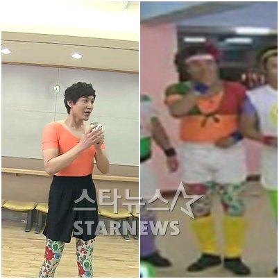 재미있는 사실은 이 에어로빅 복이 지난 2008년 MBC'무한도전'이 에어로빅 특집을 할때 정준하가 입었던 옷이라는 것. 타이즈 위에 입은 반바지는 각각 검은색 흰색으로 색깔이 다르지만 상의와 타이즈는 같다.