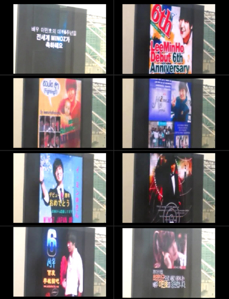 11일 소속사 스타우스엔터테인먼트는 "세계 각국에 결성된 이민호 팬클럽 미노즈가 이민호 데뷔 6주년을 기념해 동영상을 제작했다"며 "서울 명동과 논현동 총3곳의 전광판에서 영상이 상영되고 있다"고 밝혔다.