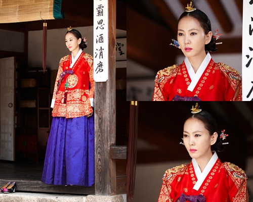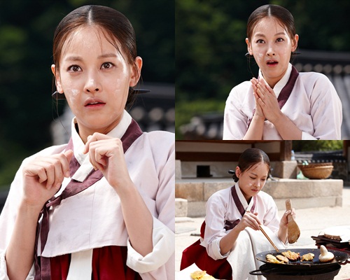 이날 공개된 촬영 컷에서 김남주는 빨간색 적삼에 파란색 치마를 매치하고 쪽머리에 비녀를 꽂아 곱디고운 중전마마의 모습을 연출했다. 오연서는 이와는 대조적으로 잔뜩 겁먹은 채로 밀가루가 코에 묻은 줄도 모르고 열심히 전을 부치고 있다.