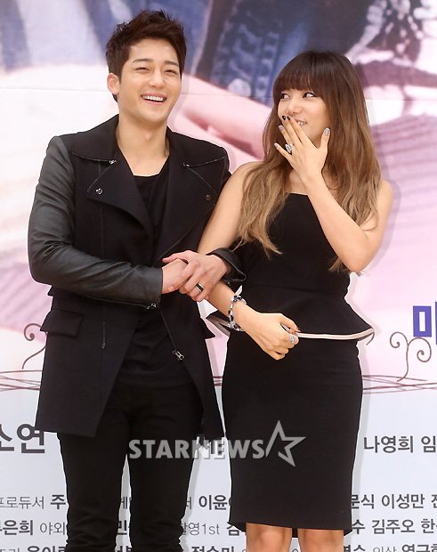 탤런트 김진우와 이채영이 3일 오후 서울 목동SBS 사옥에서 열린 드라마 '가족의 탄생' 제작발표회에서 포즈를 취하고 있다.