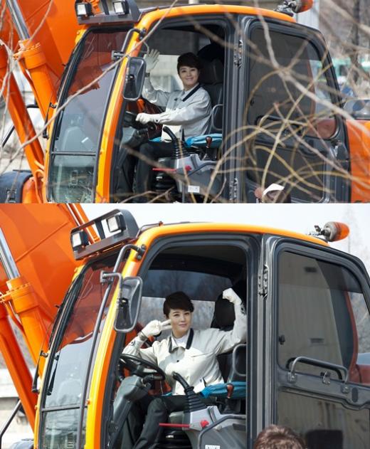 김혜수는 오는 4월 1일 첫 방송되는 KBS 2TV 새 월화드라마 '직장의 신'(극본 윤난중 연출 전창근 노상훈)에서 계약직 직원 미스김 역할을 맡아 모든 일들을 소화해내는 뛰어난 능력을 선보일 예정. 이번에는 직접 공사장에 나서서 굴삭기를 운전했다.