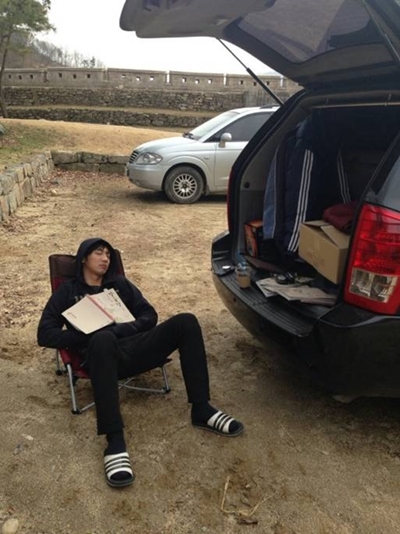 배우 이상엽이 SBS 새 월화드라마 '장옥정'(극본 최정미 연출 부성철) 촬영장에서의 쪽잠사진을 공개했다.