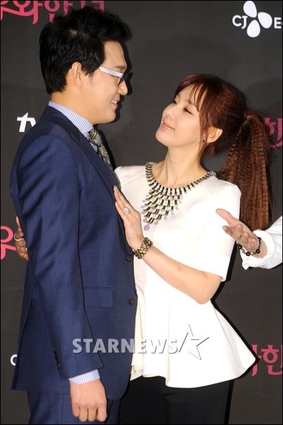 배우 박성웅, 오현경이 15일 오후 서울 마포구 상암동 CJ E&M센터에서 열린 케이블채널 tvN 드라마 '우와한 녀' 제작발표회에 참석해 포즈를 취하고 있다.