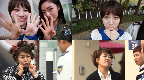 연기자 클라라와 그룹 걸스데이(유라 혜리 민아 소진)의 유라가 방송인 조혜련에게 애교 강습을 실시했다.