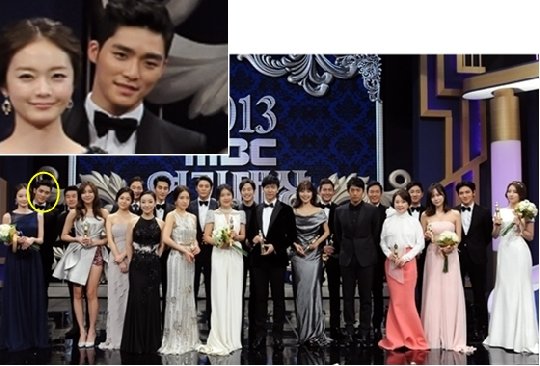 '오로라공주'의 설설희 서하준이 2013 MBC 연기대상 수상자 단체사진에 등장, 깨알 같은 재미를 선사했다.