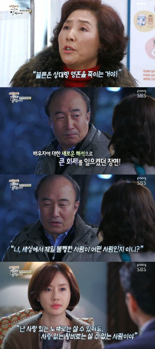 먼저 김성수(이상우 분)의 외도를 알게 된 장모 김나라(고두심 분)의 "불륜은 상대방 영혼을 죽이는 거야"라는 대사가 선정됐다. 해당 대사는 불륜에 대한 통쾌한 정의로 시청자들의 전폭적인 지지를 얻었다.