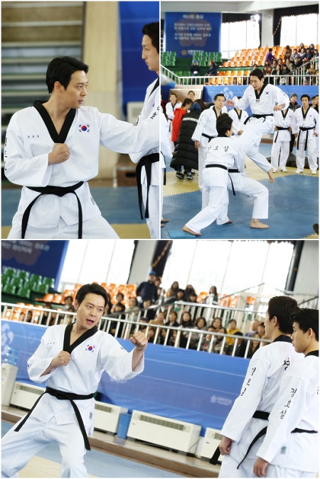 박유천은 품새를 넘어 송판 격파와 발차기 시범까지 직접 소화해내 현장에 있던 제작진의 박수를 받았다는 후문.