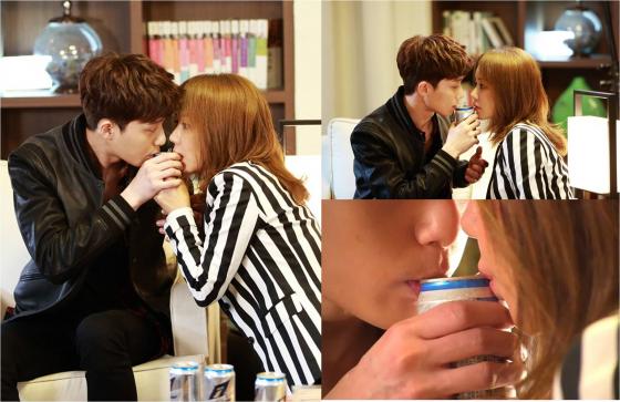 방송에 앞서 공개된 사진에서 엄정화와 박서준은 맥주 한 캔을 사이에 두고 서로 반대쪽에서 흐르는 거품을 입으로 마시고 있다. 사진만으로도 묘한 분위기를 짐작하게 만든다.