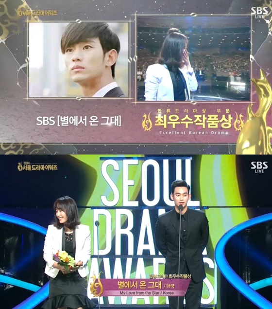 '별에서 온 그대'는 4일 오후 5시15분부터 서울 중구 장충동2가 국립극장 해오름극장에서 열린 SDA 2014 시상식에서 한류드라마 최우수작품상을 수상했다.