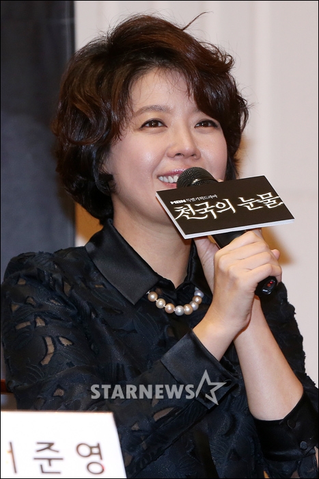 배우 김여진이 7일 오후 서울 강남구 논현동 파티오나인에서 열린 종합편성채널 MBN 특별기획드라마 '천국의 눈물' 제작발표회에 참석해 발언하고 있다.
