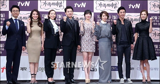 22일 오후 서울 논현동 임피리얼팰리스호텔에서 열린 tvN 일일드라마 '가족의 비밀' 제작발표회에 참석한 연기자들이 파이팅을 외치고 있다.