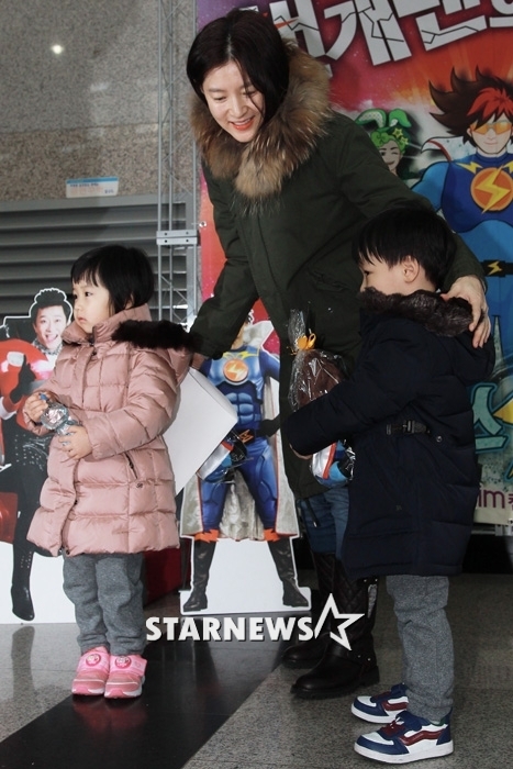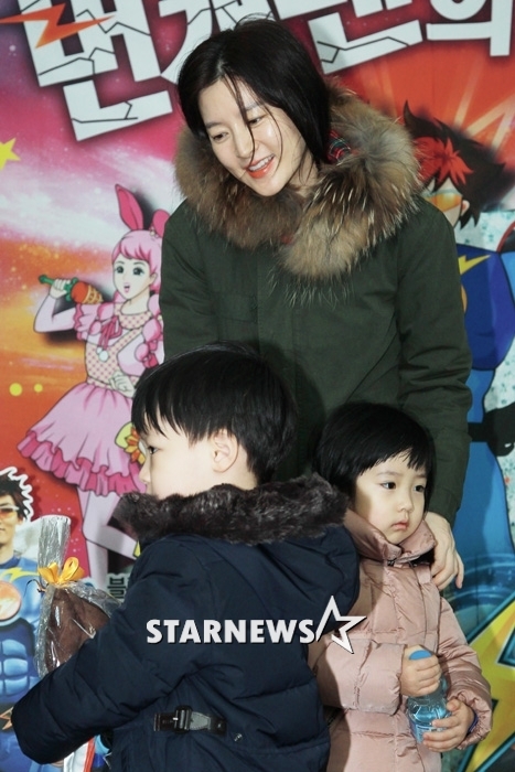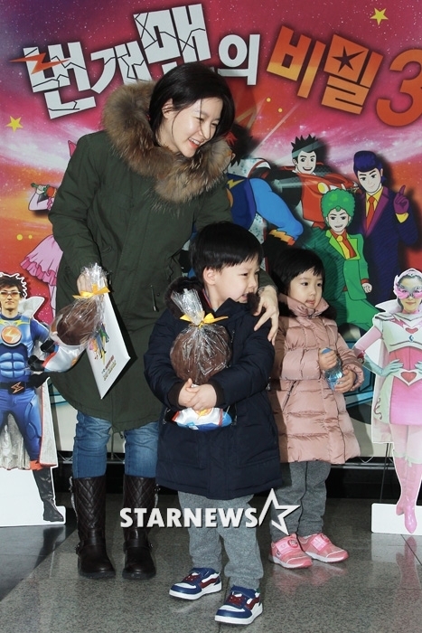 이영애는 지난 23일 오후 서울 서초동 한전아트센터에서 열린 '스페이스 번개맨 : 번개맨의 비밀3' 공연장을 찾았다. 이날 이영애는 쌍둥이 아들 정승권 군과 딸 정승빈 양과 함께 공연장을 찾아 포토타임을 가졌다.