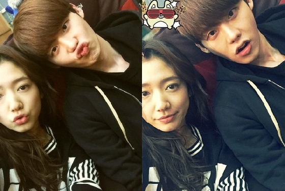 공개된 사진 속 박신혜와 이종석은 블랙 컬러의 캐주얼 차림으로 나란히 앉아있다. 특히 두 사람은 얼굴을 맞대고 다정한 포즈를 취해 눈길을 끌었다. 이들은 입술을 내미는 똑같은 포즈를 취하며 애교 가득한 셀카를 찍어 시선을 사로잡았다.