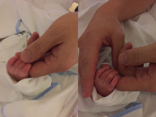 권상우는 12일 자신의 웨이보에 지난 10일 태어난 딸의 손을 공개했다. 이와 함께 애정이 듬쁙 담긴 메시지도 게재했다.