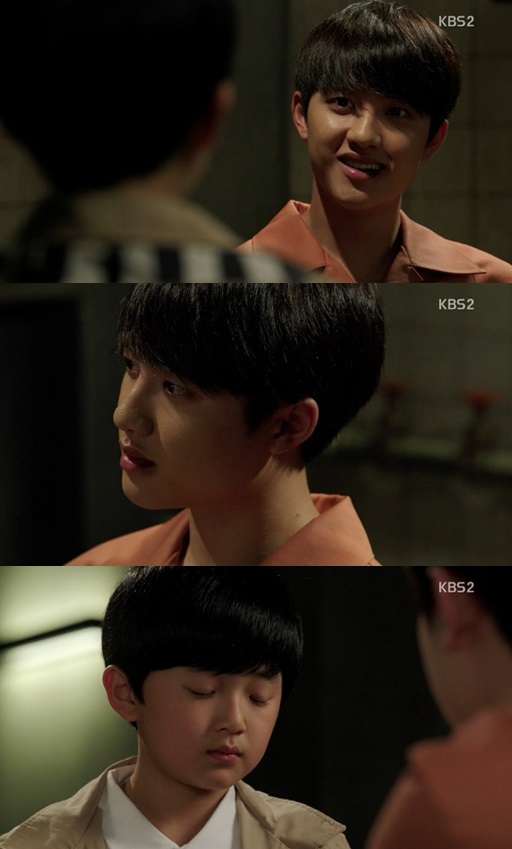22일 오후 첫 방송된 KBS 2TV 월화드라마 '너를 기억해'(극본 권기영 연출 노상훈·김진원 제작 CJ E&M)에서는 어린 이현(홍현택 분)이 이준영(디오 분)을 지하 수사실에서 만나 대화 나누는 장면이 그려졌다.