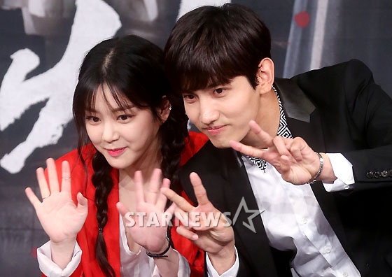 탤런트 이유비와 최강창민이 7일 오후 서울 상암MBC에서 열린 드라마 '밤을 걷는 선비' 제작발표회에 참석하고 있다.