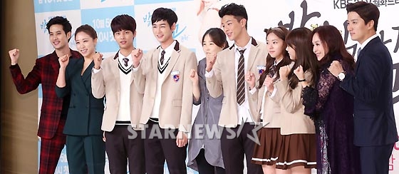 2일 오후 서울 영등포 타임스퀘어에서 열린 KBS 2TV 월화드라마 '발칙하게 고고' 제작발표회에 참석한 감독 및 연기자들이 파이팅을 외치고 있다.