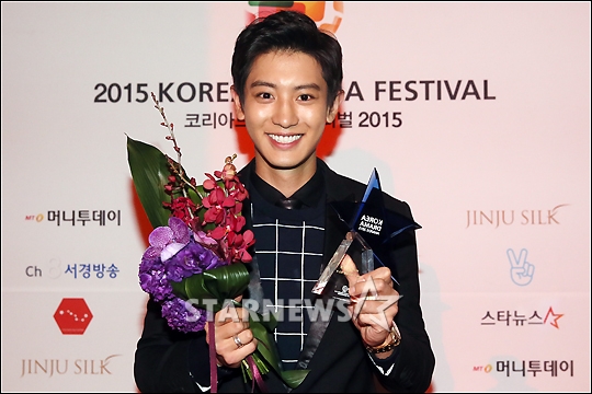 찬열은 이날 경남 진주시 경남문화예술회관에서 열린 2015 코리아드라마어워즈(주최 코리아드라마페스티벌 조직위원회·주관 스타뉴스)에서 웹드라마 '우리 옆집에 엑소가 산다'로 남자 신인상과 한류스타상을 받았다.