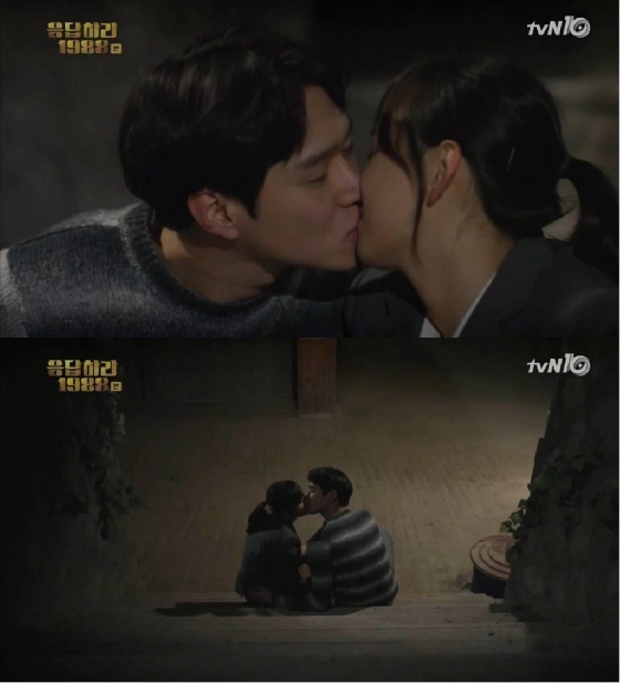 드라마 '응답하라1988(이하'응팔')'의 류혜영과 고경표가 6년 만에 연애를 다시 시작하며 골목길에서 키스를 했다.