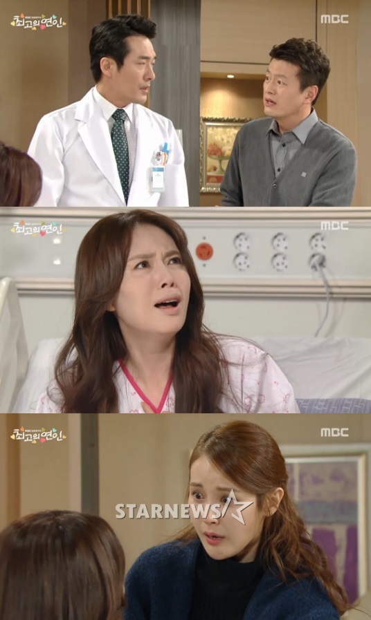 12일 오후 방송된 MBC 일일연속극 '최고의 연인'(극본 서현주, 연출 최창욱·최준배)에서 나보배(하희라 분)는 최영광(강태오 분)의 엄마 피말숙(김서라)에게 한아름(강민경 분)과 최영광의 관계를 알게 되어 충격으로 쓰러져 병원에 입원했다.