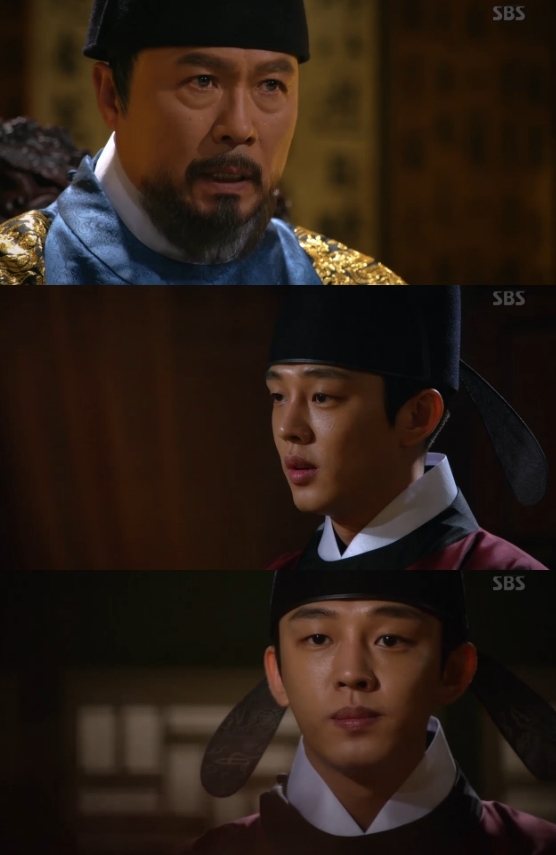 16일 오후 방송된 SBS 월화드라마 '육룡이 나르샤'(극본 김영현·박상연, 연출 신경수)에서는 이성계(천호진 분)를 만나는 이방원(유아인 분)의 모습이 그려졌다.