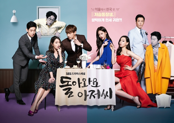 SBS 새 수목드라마 '돌아와요 아저씨'(극본 노혜영 연출 신윤섭 제작 신영이엔씨, 후너스엔터테인먼트)는 죽은 '저승 동창생' 김영수(김인권 분)와 한기탁(김수로 분)이 각각 이해준(정지훈 분)과 홍난(오연서 분)으로 환골탈태, 180도 다른 모습으로 현세에 귀환해 다시 한 번 세상을 살아가는 과정을 그린 작품.