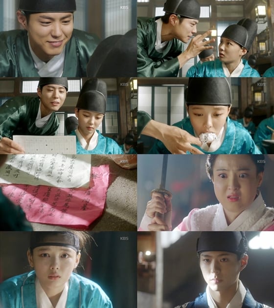 지난 23일 오후 방송된 KBS 2TV 월화드라마 '구르미 그린 달빛'(극본 김민정 임예진 연출 김성윤 백상훈 제작 구르미그린달빛 문전사 KBS미디어)에서는 내시가 되지 않으려 꾀를 부리는 홍라온(김유정 분)과 그 맘을 모른 채 손수 라온의 내관 시험을 돕는 이영(박보검 분)의 이야기가 그려졌다.