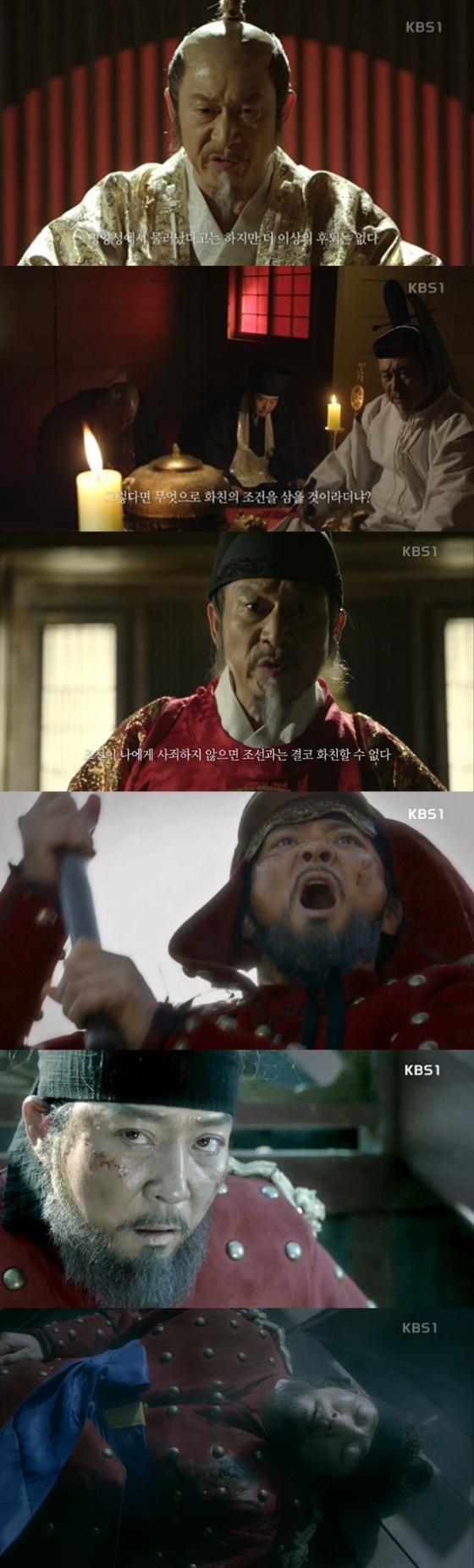 이날 방송에서 김응수는 도요토미 히데요시를 연기하며 시청자들을 몰입시켰다. 히데요시는 패색이 짙어가는 일본의 상황에도 권모술수를 통해 이득을 취했다. 히데요시는 "조선은 일본이 명나라에 입조하려는 사실을 숨기고 일본을 막았다"라며 명나라에게 거짓 해명을 해 명나라로부터 책봉을 받아냈다.