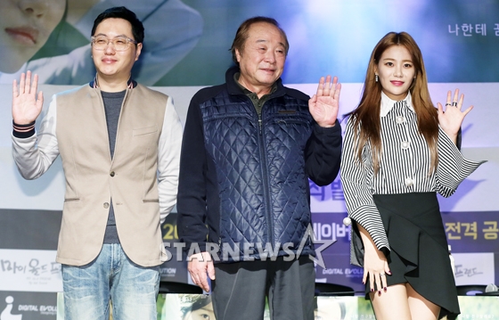 이한종 감독, 배우 문창길, AOA 유나가 13일 오후 서울 마포구 스테이라운지에서 진행된 웹드라마 '마이 올드 프렌드' 제작발표회에 참석해 포즈를 취하고 있다.