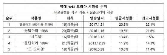◆ tvN, 또 한 번 역사를 바꾸다..케이블 드라마 사상 첫 평균 시청률 20% 돌파