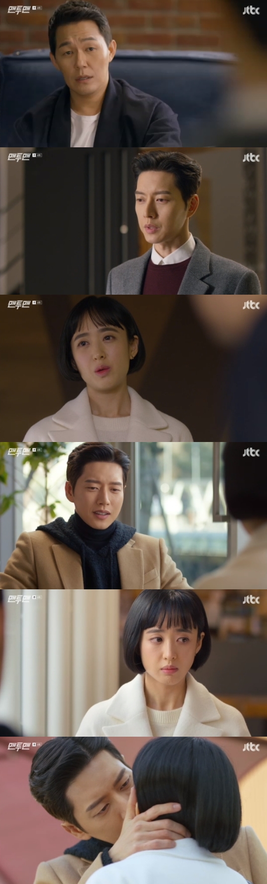 드라마 '맨투맨'에서 박해진이 김민정에게 키스하며 작전을 이어나갔다.