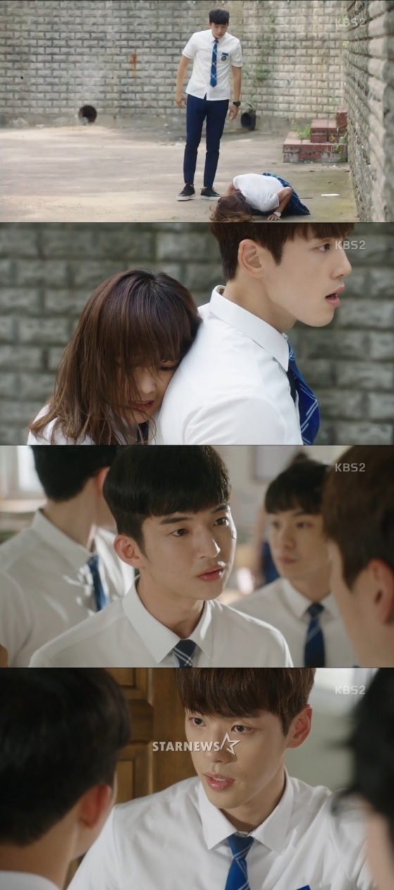 14일 오후 방송된 KBS 2TV 월화드라마 '학교 2017'(극본 정찬미 김승원·연출 박진석 송민엽, 제작 학교2017 문화산업전문회사 프로덕션에이치)에서는 현태운(김정현 분)이 라은호(김세정 분)가 위험한 순간에 나타났다.