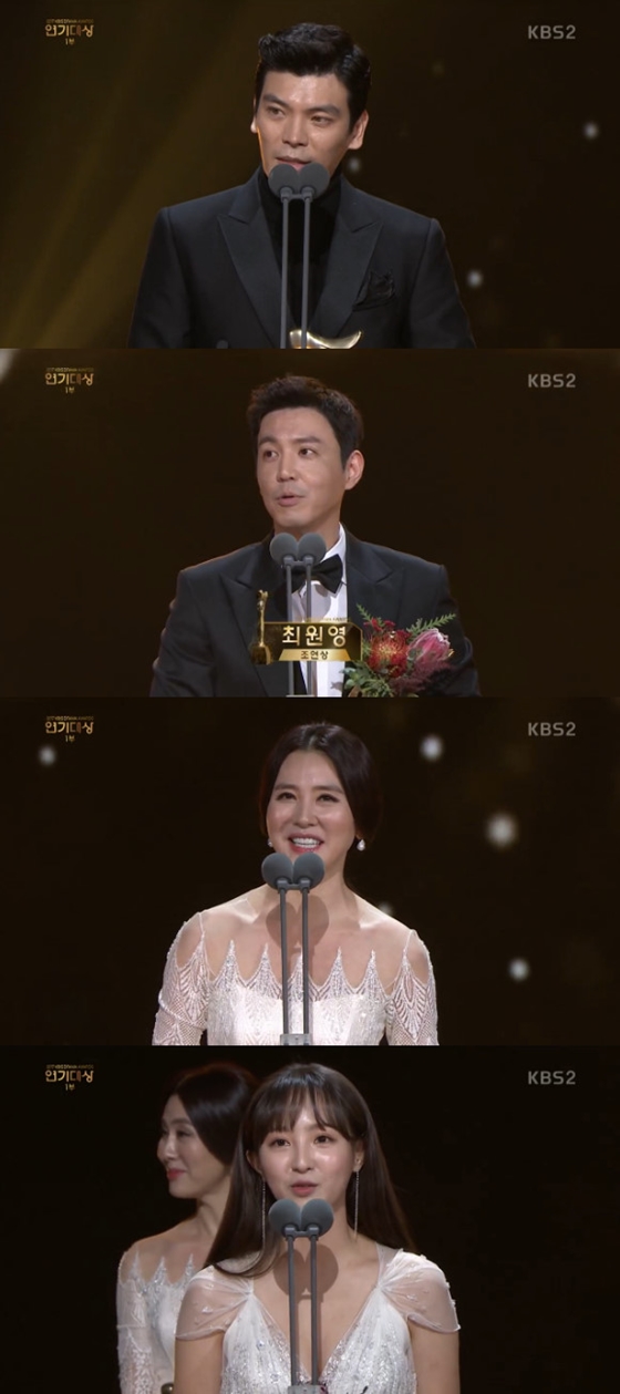 배우 김성오, 최원영, 이일화, 정혜성이 KBS 연기대상에서 조연상을 받았다.