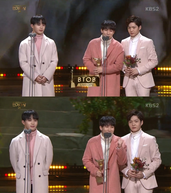 그룹 비투비가 KBS 연기대상에서 드라마 OST상을 수상했다.