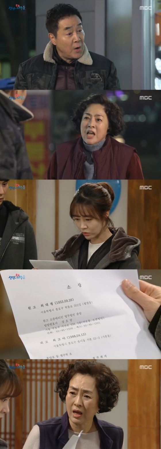 22일 오후 방송된 MBC 일일드라마 '전생에 웬수들'(극본 김지은, 연출 김흥동, 제작 래몽래인)에서 최고야(최윤영 분)를 고소한 아버지 최태평(한진희 분)의 모습이 그려졌다.