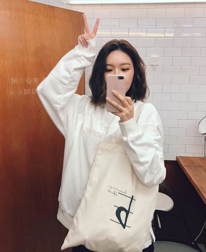 공개된 사진 속 수영은 흰색 맨투맨 티를 입고 머리 위로 브이 자를 그리고 있다. 휴대폰으로 얼굴 반을 가리고 있는데도 단발머리를 훌륭하게 소화하고 있는 그의 미모가 돋보여 팬들의 시선을 사로잡았다.