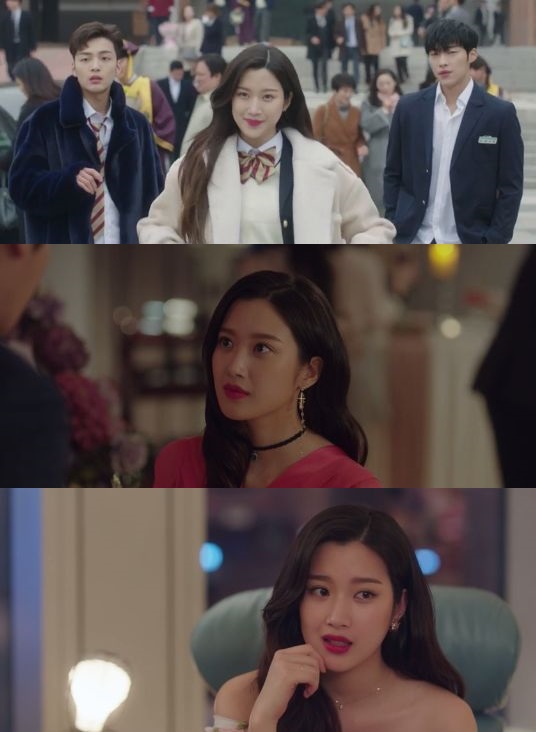 문가영은 등장부터 강렬했다. 명정 병원 손녀 최수지로 분한 문가영은 우도환과 아찔한 스킨쉽을 연출하며 시선을 사로잡았다. 국어 선생 앞에서 권시현과 입술이 닿을 듯 밀착해 연인 사이인 척 연기를 한 것.