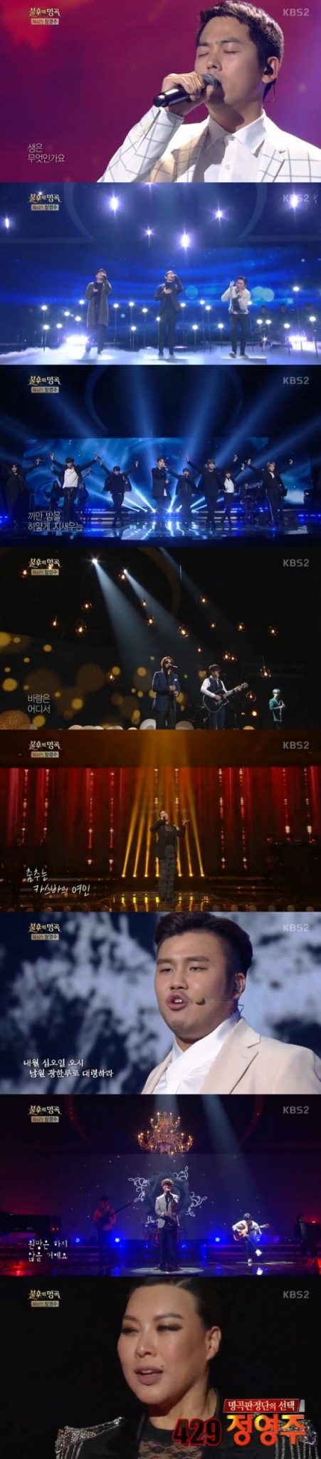 다음으로는 뮤지컬 배우 정영주가 무대에 올랐다. 정영주는 윤희상의 '카스바의 연인'을 준비했다. 무대가 시작되자 정영주는 파워풀한 퍼포먼스와 강렬한 카리스마를 뿜어내며 무대를 발칵 뒤집었다. 정영주는 429점의 높은 점수로 다시 한 번 정상을 갈아 엎었다.