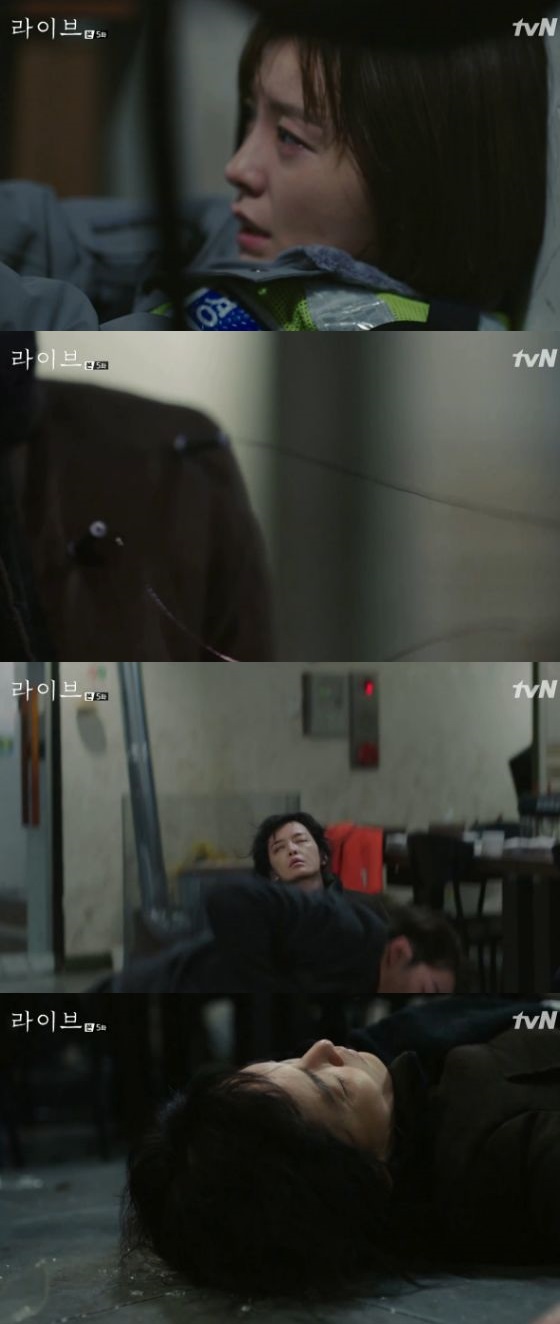 24일 오후 방송된 tvN 주말 드라마 '라이브'(극본 노희경, 연출 김규태)에서는 어쩔 수 없는 상태에서 임산부에게 테이저 건을 쏴 위기에 처한 한종오(정유미 분)의 모습이 그려졌다.
