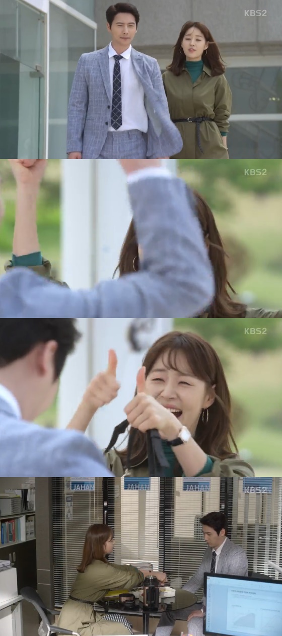5일 오후 방송된 KBS 2TV 주말 드라마 '같이 살래요'(극본 박필주, 연출 윤창범, 제작 지앤지프로덕션)에서는 지원금 계약을 따내는 박유하(한지혜 분)와 정은태(이상우 분)의 모습이 그려졌다.